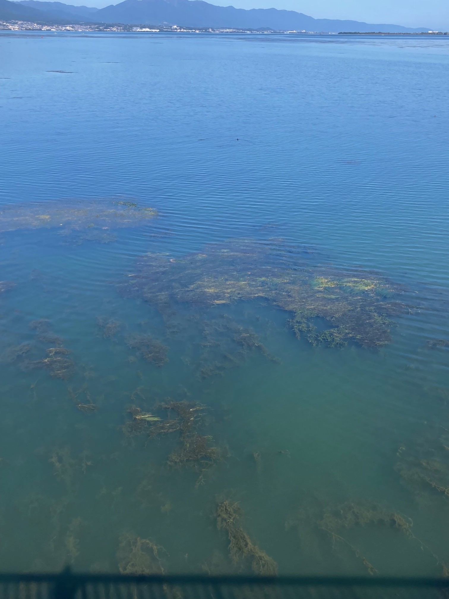 久しぶりの秋晴れ 今日の大津市は秋晴れ! 久しぶりにすっきりとした青空になりました。 ここ数日はぐずぐずと雨がちな天気が続いていたので、 秋らしい陽射が感じられるだけでありがたいと思ってしまいます。 今日は気温も高めで、近畿地方は30℃に迫るところもあるようですが、 来週にはぐっと涼しくなるとのこと。 秋らしさを満喫できる日が待ち遠しいです。 本日の琵琶湖は穏やかな鏡面状態。 ただ前回同様、水草が目立ちました。 かなりの量。影響が心配です。 « 快晴